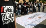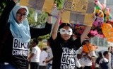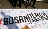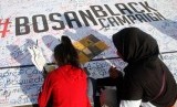 Mahasiswa UI menggelar aksi Bosan Black Campaign di Bundaran HI, Jakarta, Ahad (22/6). (Republika/ Yasin Habibi)