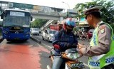 Anggota kepolisian memberhentikan pengendara yang memasuki jalur busway di jalan MT. Haryono, Jakarta Timur, Selasa (24/6). (foto : Raisan Al Farisi)
