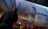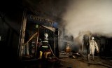 Kebakaran yang melanda pertokoan tekstil tersebut diduga akibat hubungan pendek arus listrik.