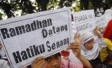 REPUBLIKA.CO.ID, SOLO -- Sejumlah siswi SD Al Fattah mengadakan aksi menyambut datangnya bulan suci Ramadhan 1435 H di Manahan, Solo, Jateng, Kamis (26/6).