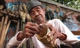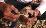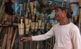 Pak Heri (84) membuat obor sambil menanti pembeli di kawasan Manggarai, Jakarta Selatan, Kamis (26/6). ( Republika/Rakhmawaty La'lang)