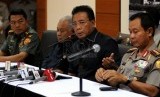 Menko Polhukam Djoko Suyanto (kedua kanan) memberikan keterangan pers terkait pengamanan Pilpres 2014 di Jakarta, Rabu (2/7). (Republika/Aditya Pradana Putra)