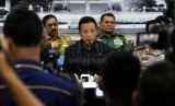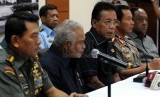 Menko Polhukam Djoko Suyanto (kedua kanan) usai memberikan keterangan pers terkait pengamanan Pilpres 2014 di Jakarta, Rabu (2/7). (Republika/Aditya Pradana Putra)