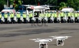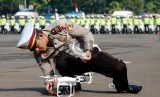 Anggota Korps Lalu Lintas Polri mengoperasikan pesawat berkamera saat mengikuti apel persiapan Operasi Ketupat Lebaran 2014 di Parkir Timur Senayan, Jakarta, Kamis (3/7). (Republika/ Yasin Habibi)