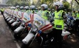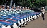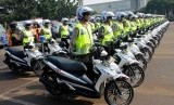 Anggota Korps Lalu Lintas Polri mengikuti apel persiapan Operasi Ketupat Lebaran 2014 di Parkir Timur Senayan, Jakarta, Kamis (3/7). (Republika/ Yasin Habibi)