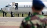 Satuan 81 Kopassus dan Satuan Bravo Paskhas TNI AU menangkap tersangka dalam operasi pembebasan sandera pesawat Boeing 737 di Lanud Iswahjudi, Madiun, Jawa Timur, Senin (7/7). (Republika/Agung Supriyanto)
