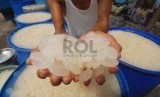REPUBLIKA.CO.ID, JAKARTA -- Seorang pedagang kolang kaling menunggu pembeli sambil menata barang dagangannya di Pasar Tanah Abang, Jakarta Barat, Selasa (8/7).