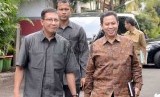 Menteri Agama, Lukman Hakim Saifuddin (kiri) dan Dirjen Penyelenggaraan Haji dan Umroh, Abdul Jamil (kanan) saat berkunjung ke Kantor ICW, Jakarta, Selasa (15/7). (Republika/Agung Supriyanto). (FOTO : Republika/Agung Supriyanto)