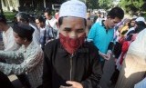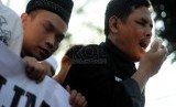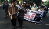 REPUBLIKA.CO.ID, BANDUNG -- Sejumlah penyandang tunanetra yang tergabung dalam Ikatan Tunanetra Muslim Indonesia (ITMI) melakukan aksi longmarch solidaritas terhadap Palestina di Jalan Pajajaran, Kota Bandung, Rabu(16/7).