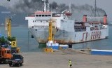Salah satu armada kapal penyeberangan Ferry bersandar di Pelabuhan Merak, Banten, Ahad (20/7).(Republika/Prayogi)
