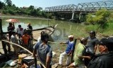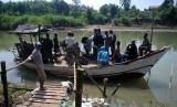 REPUBLIKA.CO.ID, PEMALANG -- Warga menyeberang menggunakan perahu darurat pascaambles Jembatan Comal di Pemalang, Jawa Tengah, Senin (21/7).