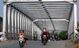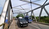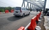 Kendaraan melintas di jembatan darurat Comal, Pemalang, Jawa Tengah, Kamis (24/7). (Republika/Wihdan)