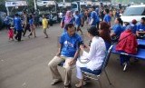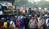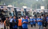 REPUBLIKA.CO.ID, JAKARTA -- Sejumlah pemudik mengikuti mudik gratis di Gelora Bung Karno, Jakarta, Kamis (24/7).