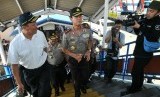REPUBLIKA.CO.ID, MERAK -- Kapolri Jenderal Polisi Sutarman didampingi Dirut PT ASDP Ferry Indonesia Danang Baskoro meninjau kesiapan pelayanan mudik Lebaran 2014 di pelabuhan Merak, Banten, Kamis (24/7).