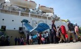 REPUBLIKA.CO.ID, JAKARTA -- Sejumlah pemudik mulai memasuki Kapal Muat Ciremai yang berlabuh di Pelabuhan Tanjung Priok, Jakarta Utara, Kamis (24/7).