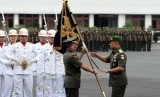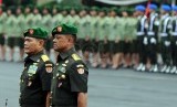 REPUBLIKA.CO.ID, JAKARTA -- Panglima TNI Jenderal Moeldoko memimpin acara serah terima jabatan dari mantan Kepala Staf Angkatan Darat (KSAD) Jenderal TNI Budiman kepada KSAD Letjen TNI Gatot Nurmantyo di Mabes TNI AD, Jakarta, Jumat (25/7).