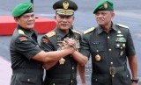 Panglima TNI Jenderal Moeldoko (tengah) berfoto bersama mantan KSAD Jenderal TNI Budiman (kiri) dan KSAD Letjen TNI Gatot Nurmantyo usai upacara serah terima jabatan KSAD di Mabes TNI AD, Jakarta, Jumat (25/7). (Republika/Aditya Pradana Putra) (FOTO : Republika/Aditya Pradana Putra)