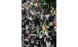 REPUBLIKA.CO.ID, JAKARTA -- Sejumlah massa pengunjuk rasa dari gabungan sejumlah organisasi muslim berdemontrasi di Jalan MH Thamrin, Jakarta, Jumat (25/7).