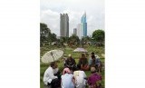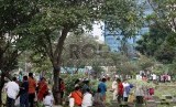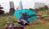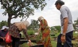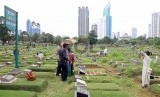 REPUBLIKA.CO.ID, JAKARTA -- Pada hari pertama lebaran, sejumlah warga berziarah ke makam kerabat mereka di Tempat Pemakaman Umum (TPU) Karet Bivak, Jakarta, Senin (28/7).