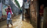 REPUBLIKA.CO.ID, JAKARTA -- Warga menerjang banjir yang merendam kawasan Petogogan, Jakarta Selatan, Selasa (29/7).