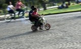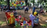 Warga menunggang permainan sepeda motor mini di Taman Silang Monumen Nasional (Monas), Jakarta, Selasa (29/7). (Republika/Aditya Pradana Putra)