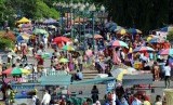 Pengunjung dan pedagang kaki lima memadati di Kawasan Silang Monumen Nasional (Monas), Jakarta, Selasa (29/7).( Republika/Aditya Pradana Putra)