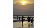 REPUBLIKA.CO.ID, KUTA -- Ribuan wisatawan domestik dan mancanegara menikmati pemandangan pantai saat liburan Idul Fitri 1435 H di Pantai Kuta, Bali, Rabu (30/7).