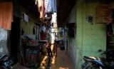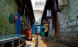 REPUBLIKA.CO.ID, JAKARTA -- Suasana di komplek kontrakan pegawai pabrik yang sepi ditinggal oleh penghuninya di kawasan Pulo Gadung, Jakarta Timur, Kamis (31/7).