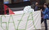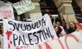REPUBLIKA.CO.ID, MARIBOR -- Aksi unjuk rasa menentang agresi militer Israel di Jalur Gaza, sebelum pertandingan babak kualifikasi ketiga sepak bola Liga Champions antara Maribor dan Maccabi Tel Aviv, di Maribor, Slovenia, Rabu (30/7).