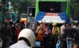 REPUBLIKA.CO.ID, JAKARTA -- Suasana pemudik saat tiba di Terminal Kampung Rambutan, Jumat (1/8).