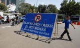 REPUBLIKA.CO.ID, JAKARTA -- Petugas kepolisian melakukan pengalihan arus lalu lintas di Jalan Medan Merdeka Barat, Jakarta Pusat, Rabu (6/8).