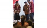 Presiden Susilo Bambang Yudhoyono (kanan) dan Ibu Negara Ny. Ani Yudhoyono (kiri) berbincang dengan Presiden ke-3 RI B.J. Habibie (tengah) pada puncak Peringatan Hari Anak Nasional Tahun 2014 di Jakarta, Rabu (6/8). (Antara/Widodo S. Jusuf)