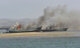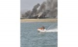 Tim gabungan yang terdiri dari Polisi, SAR, TNI dan pemadam kebakaran dikerahkan untuk proses pemadaman kebakaran di tengah laut yang menghanguskan 6 kapal ikan.