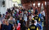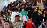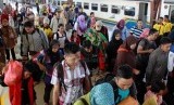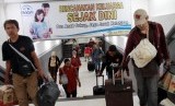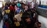 REPUBLIKA.CO.ID, JAKARTA -- Ratusan penumpang kereta api Fajar Utama Semarang tiba di Stasiun Pasar Senen, Jakarta, Kamis (7/8).