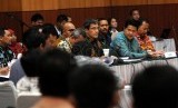 REPUBLIKA.CO.ID, JAKARTA -- Ketua Dewan Kehormatan Penyelenggara Pemilu (DKPP) RI Jimly Asshidiqie memimpin sidang perdana dugaan pelanggaran kode etik KPU dan Badan Pengawas Pemilu (Bawaslu) di Jakarta, Jumat (8/8).