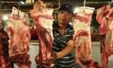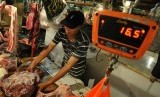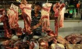 REPUBLIKA.CO.ID, JAKARTA -- Pedagang daging sapi di pasar Jatinegara,Jakarta, Senin (11/8).