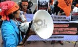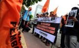 REPUBLIKA.CO.ID, JAKARTA -- Sejumlah massa yang tergabung dalam Gerakan Mahasiswa Pembebasan melakukan aksi unjuk rasa di depan kantor Energi Sumber Daya Mineral (ESDM), Jakarta, Senin (11/8).