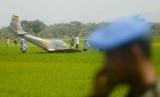 REPUBLIKA.CO.ID, SUKOHARJO -- Personel TNI-AU mengamankan pesawat Bravo AS-202 yang jatuh di areal persawahan Jogodayoh, Sukoharjo, Jateng, Selasa (12/8).