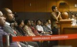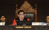 REPUBLIKA.CO.ID, JAKARTA -- Ketua Majelis Hakim Mahkamah Konstitusi (MK) Hamdan Zoelva mendengarkan keterangan saksi dari pihak terkait pada sidang lanjutan Perselisihan Hasil Pemilihan Umum (PHPU) Pilpres 2014 di Gedung MK, Jakarta, Kamis (14/8).
