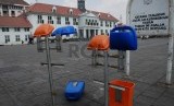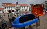 REPUBLIKA.CO.ID, JAKARTA -- Kondisi sejumlah tempat sampah di kawasan wisata kota Tua, Jakarta Barat, Kamis (14/8).