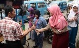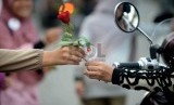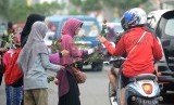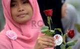 REPUBLIKA.CO.ID, DEPOK -- Sejumlah pemuda pemudi yang tergabung dalam Rose For Palestine memberikan bunga kepada para warga di depan Depok Town Square, Depok, Jawa Barat, Ahad (17/8).