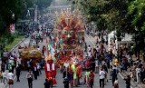 REPUBLIKA.CO.ID, JAKARTA -- Iring-iringan Pawai Karnaval Budaya memadati Jalan Medan merdeka Barat, Jakarta, Senin (18/8).