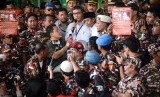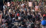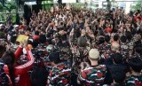 Massa dari berbagai organisasi massa seperti Laskar Merah Putih, Pemuda Pancasila Marga (PPM), Forum Komunikasi Putra Putri TNI Polri (FKPPI) melakukan aksi unjuk rasa di depan Gedung KPK, Jakarta, Senin (18/8). (Republika/Agung Supriyanto)