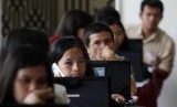 REPUBLIKA.CO.ID, JAKARTA -- Peserta tes Calon pegawai Negeri Sipil (CPNS) melakukan simulasi tes secara online di kawasan Senayan, Jakarta, Rabu (20/8).