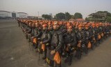 Anggota dari TNI AU mengikuti apel kesiapan pasukan TNI terkait pengumuman sidang putusan perselisihan hasil pemilihan umum presiden dan wakil presiden di JIExpo, Jakarta Pusat, Kamis (21/8).(Antara/Vitalis Yogi Trisna)