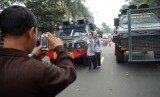 REPUBLIKA.CO.ID, JAKARTA -- Warga berfoto selfie di depan kendaraan taktis yang diparkir dekat gedung Mahkamah Konstitusi (MK) Jalan Merdeka Barat, Jakarta Pusat, Kamis (21/8).