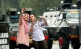 Kehadiran sejumlah kendaraan taktis aparat keamanan untuk pengamanan sidang putusan Mahkamah Konstitusi, menarik minat sejumlah warga untuk berfoto selfie dengan mengabadikan momen bersejarah tersebut.