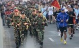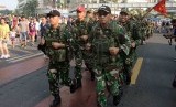 REPUBLIKA.CO.ID, JAKARTA -- Sejumlah prajurit TNI dari tiga angkatan bersenjata yang tergabung dalam Pelari "Tough Warrior", berlari menyusuri Jalan Thamrin dan Sudirman jelang Independence Day Run, Jakarta, Ahad (24/8).