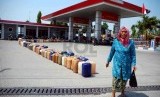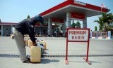 REPUBLIKA.CO.ID, INDRAMAYU -- Warga antre menyimpan jerigen nya untuk mengisi bahan bakar solar di SPBU Anjatan, Indramayu, Selasa (26/8).