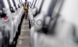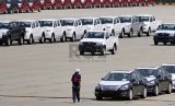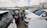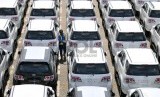 REPUBLIKA.CO.ID, JAKARTA -- Petugas memeriksa deretan mobil baru di Tanjung Priok Car Terminal, Jakarta,Kamis (28/8).